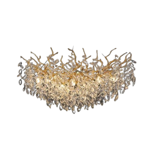 Modelul VANITY DIA se evidențiază prin forma sa rotundă, construită din ramificații fine ce înconjoară uniform întregul volum, oferind un efect organic și decorativ. Elementele dispuse radial captează lumina și creează reflexii delicate, transformând încăperea într-un spațiu cald și armonios. Silueta rotundă permite o integrare facilă în amenajări moderne, contemporane sau orientate spre naturalețe, adăugând profunzime și eleganță vizuală. Prin dinamica formelor și atmosfera luminoasă pe care o generează, VANITY DIA devine o piesă centrală ideală pentru zonele în care se caută expresivitate și echilibru estetic.