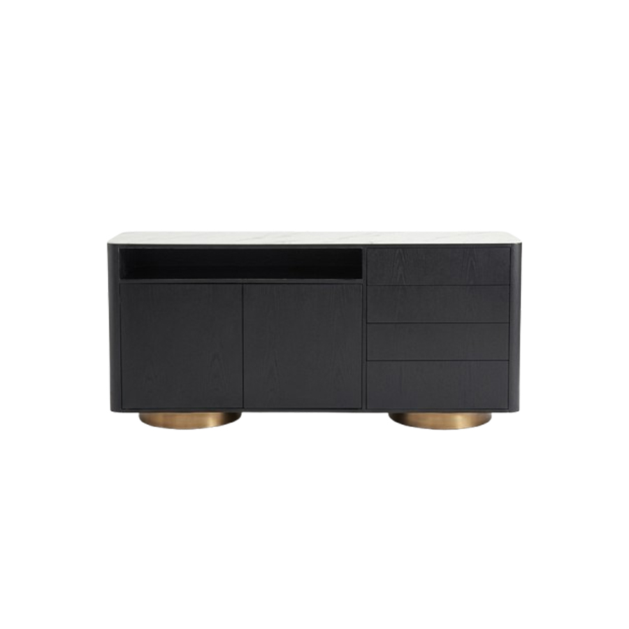 Compartimentare inteligentă – spații generoase de depozitare cu uși și sertare, ideale pentru organizarea discretă a echipamentelor media și a obiectelor personale