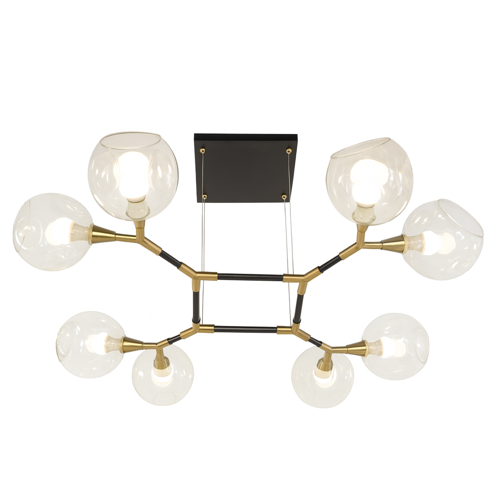 CORP DE ILUMINAT PE FIR BARTON NEGRU + AURIU - 8 GLOBURI STICLA TRANSPARENTA