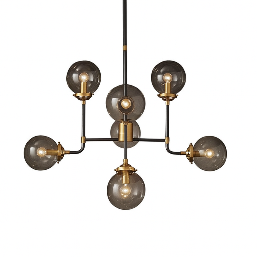 CORP DE ILUMINAT SUSPENDAT METRO AURIU - 8 GLOBURI STICLA CHIHLIMBAR