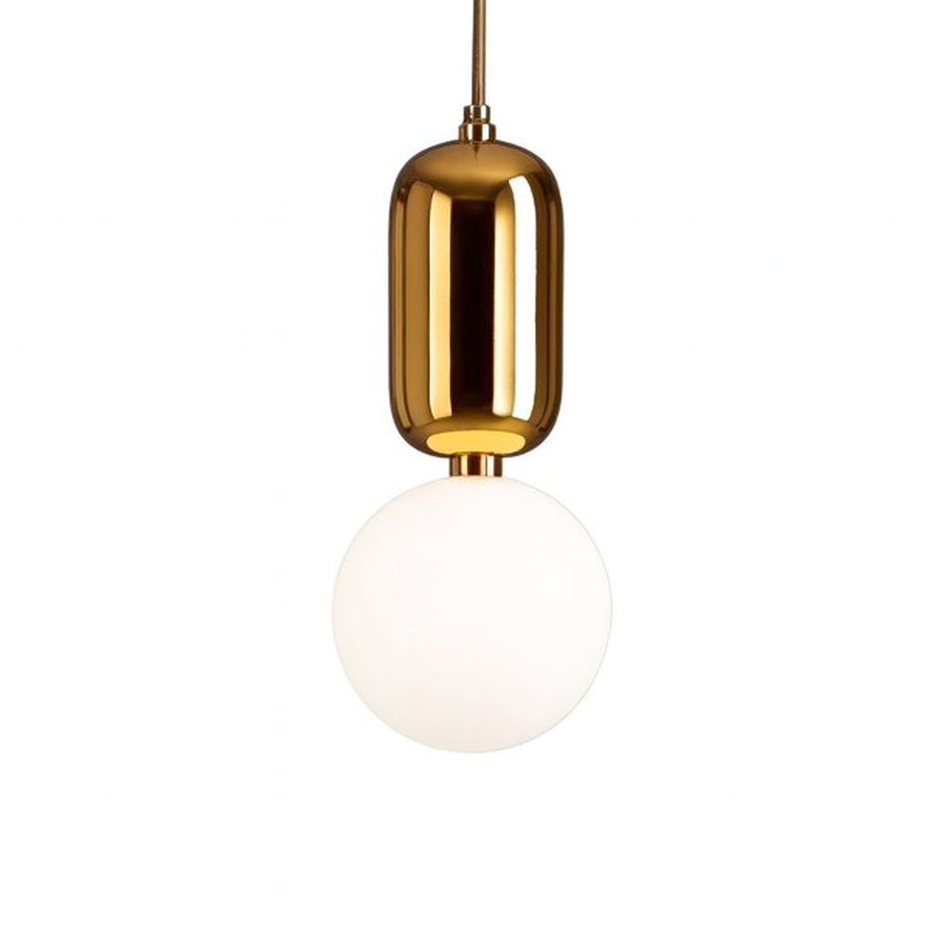 CORP DE ILUMINAT PE FIR POLIS DIA 18CM AURIU - GLOB STICLA ALBA