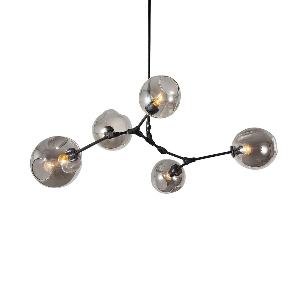 CORP DE ILUMINAT SUSPENDAT ROA LIGHT VERTICAL AURIU - 5 GLOBURI STICLA FUMURIE
