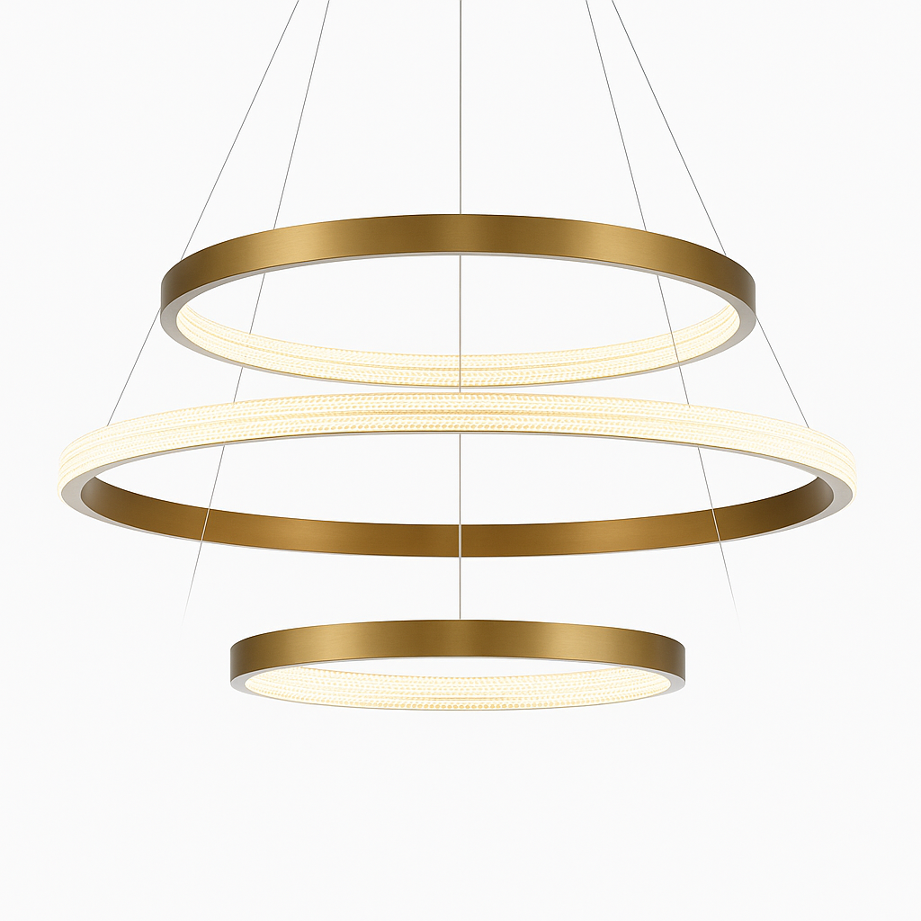 - Detalii suplimentare: Dimensiuni - Diametru 60 + 80 +100 cm, Sectiune profil 4 x 2,5 cm Culoare - Inel tip A: acrilic transparent exterior, auriu periat interior Inel tip B: auriu periat exterior, acrilic transparent interior