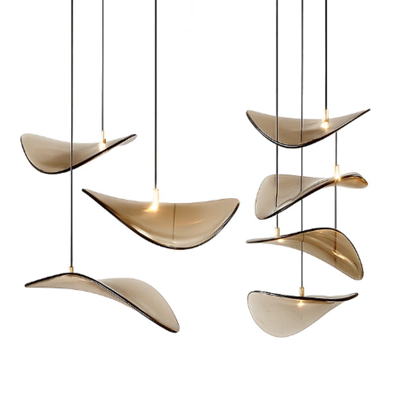 Montaj pe fir cu înălțime reglabilă. Aspect translucid ce atenuează elegant sursa de lumină. Se integrează ușor în amenajări moderne, minimaliste sau premium. Compatibil cu surse LED pentru consum redus (verificați specificațiile produsului).