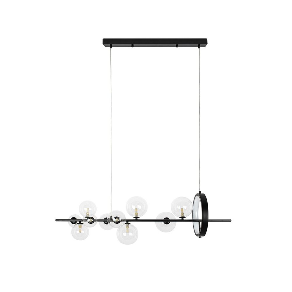 Finisaj negru mat cu globuri din sticlă transparentă ce adaugă un accent rafinat oricărui decor