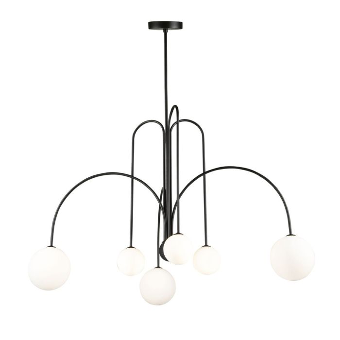 CORP DE ILUMINAT SUSPENDAT PRATO NEGRU - 6 GLOBURI STICLA ALBA