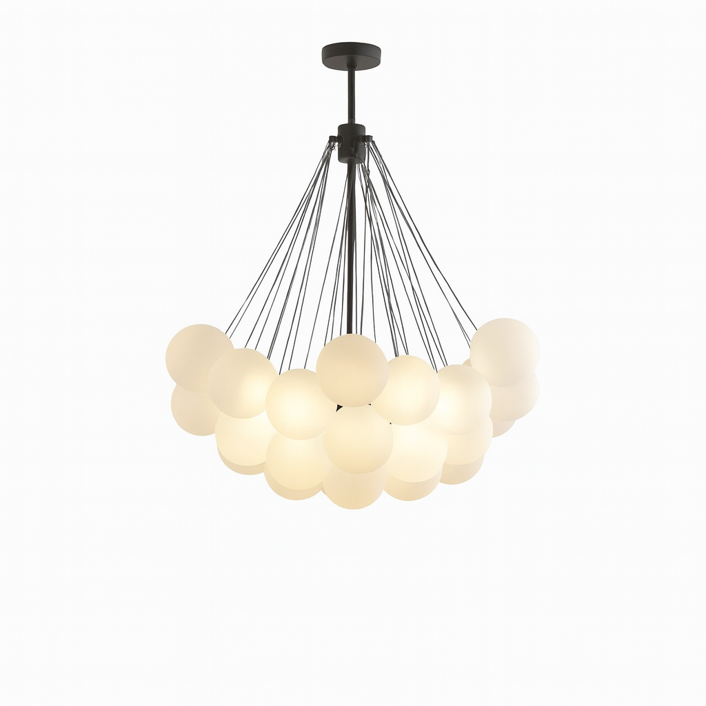 - Detalii suplimentare: Corpul este format din 37 de globuri de sticla alba si dispune de 3 surse de lumina E27