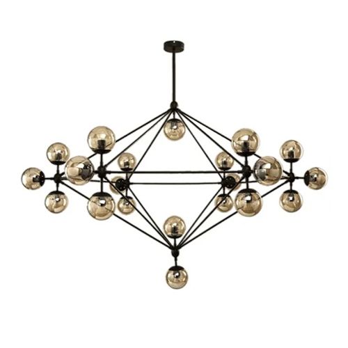 Corp suspendat Flame 21 – negru cu globuri sticlă cafeniu transparente