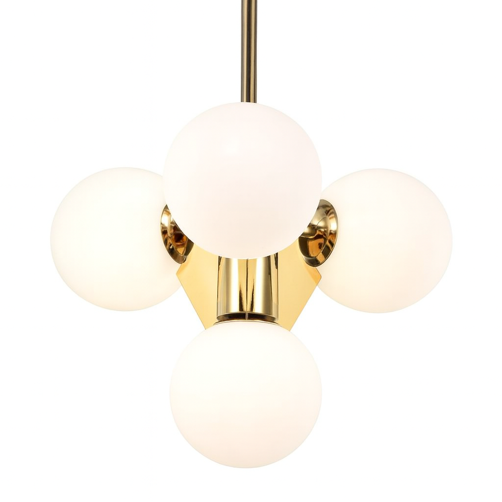 Corp suspendat Tetras-4 – auriu cu globuri din sticlă albă