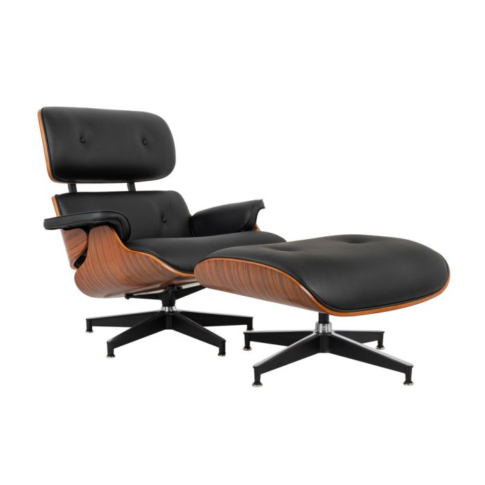 Fotoliu cu Otoman 3001-NB XL – Piele Neagră și Nuc Brun