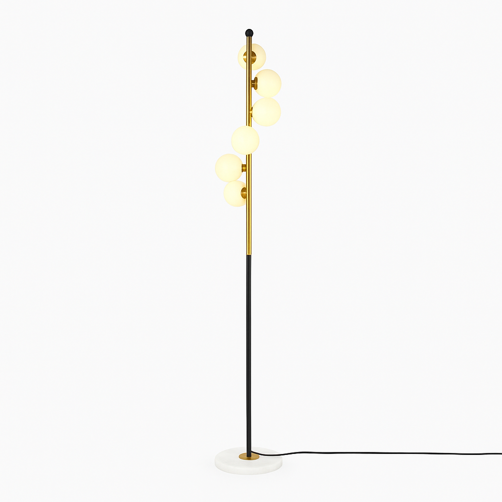 Lampă de podea Siralo – alama & marmură albă, rafinament sofisticat