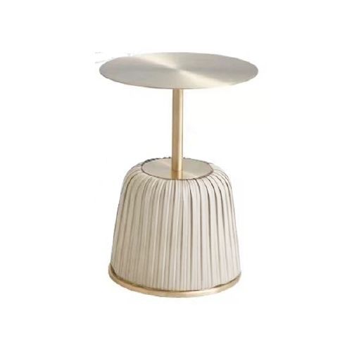 1 x MASA DE CAFEA MIAMI DIA 60 CM - BLAT CERAMIC ALB SI PICIOR AURIU + MICRO-PIELE CREM
