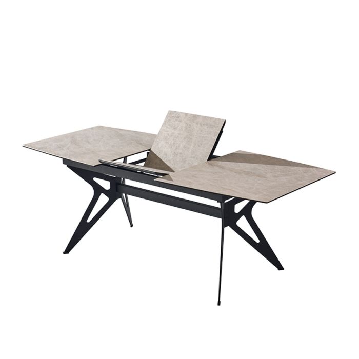 MASA DINING EXTENSIBILA LUXEMBURG 160(210) X 90CM - BLAT CERAMIC CREM SI PICIOR METALIC GRI
