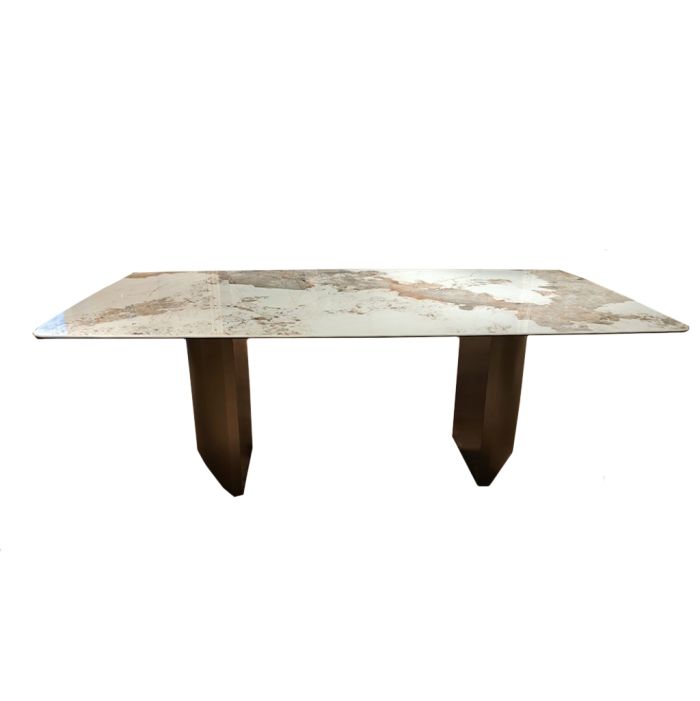 MASA DINING KREMLIN 200X100 CM - BLAT CERAMIC ALB MAT SI PICIOR METALIC GRI SIDEFAT