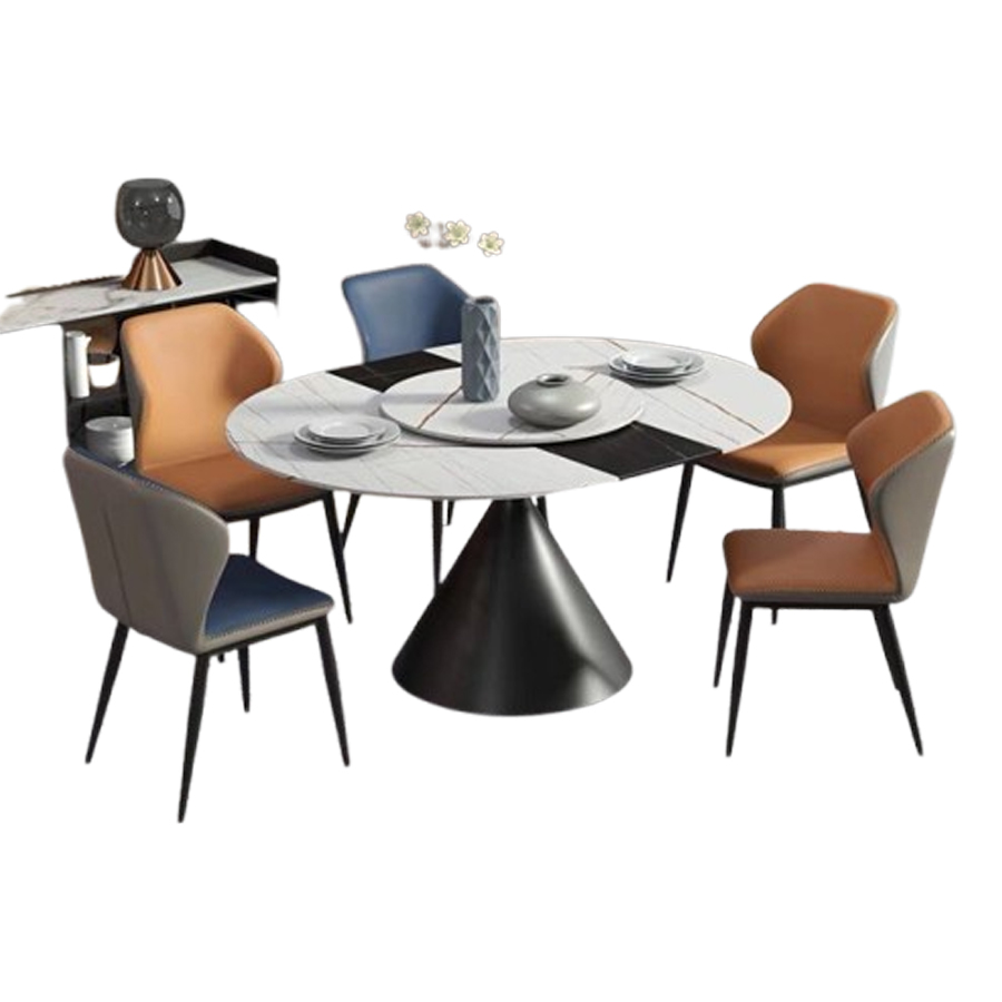 - Detalii suplimentare: Lungime extinsa - 155 cm. Diametru blat rotativ - 70 cm. Blat ceramic realizat prin sinterizare.
