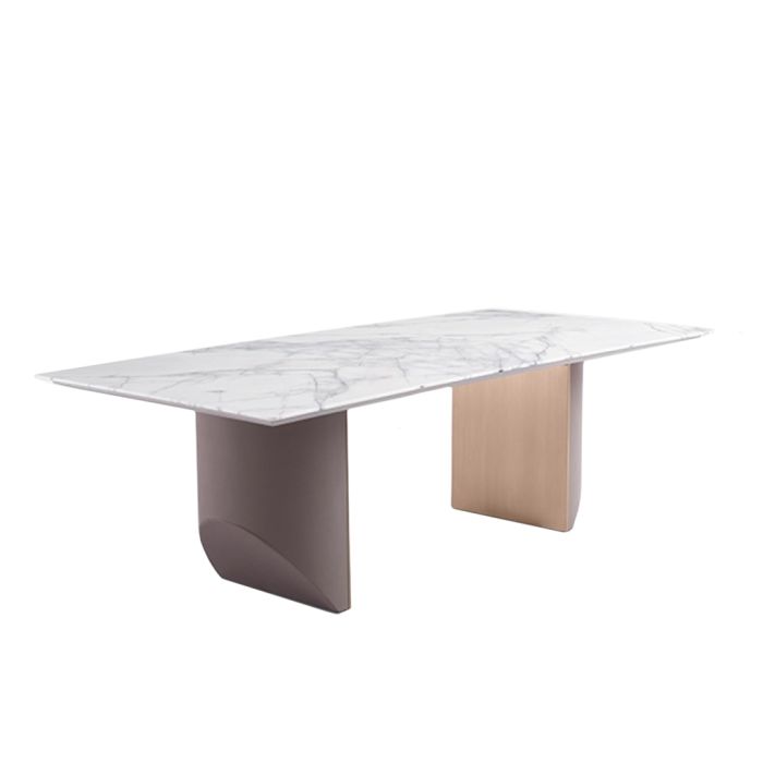 Descoperă Masa Dining Zurich 240×110 cm, o piesă de mobilier ce inspiră rafinament și prezenţă remarcabilă. Blatul din marmură naturală albă aduce luminozitate și eleganţă, iar picioarele metalice în finisaj auriu-roze creează un accent de lux subtil. Dimensiunea generoasă face din această masă centrul atenţiei în orice dining: locul ideal pentru întâlniri memorabile şi momente stilate.