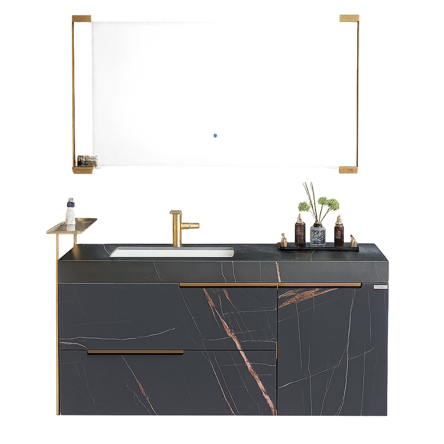 MOBILIER DE BAIE RAISA 120 CM - SET LAVOAR / OGLINDA / BLAT GRI / CORP GRI + AURIU