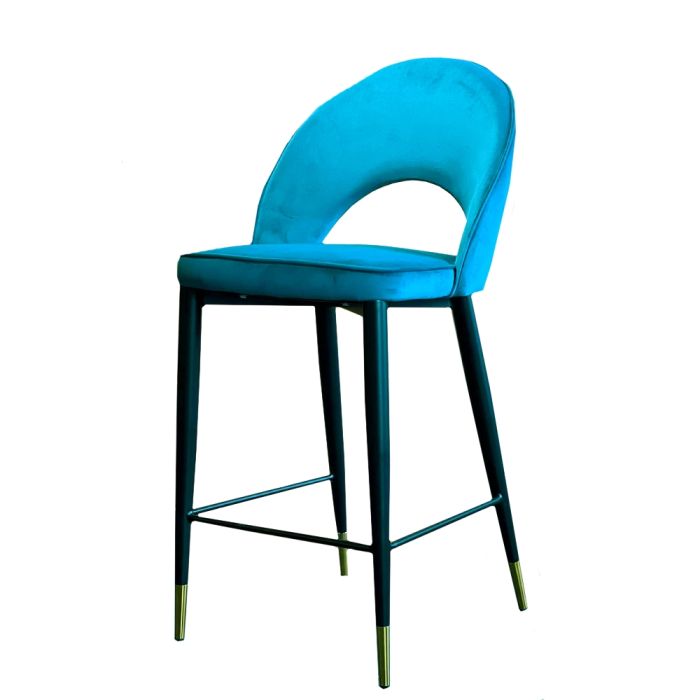 SCAUN BAR ALMO TAPITAT CATIFEA VERDE TURCOAZ CC-63 / PICIOR NEGRU + AURIU H65 CM